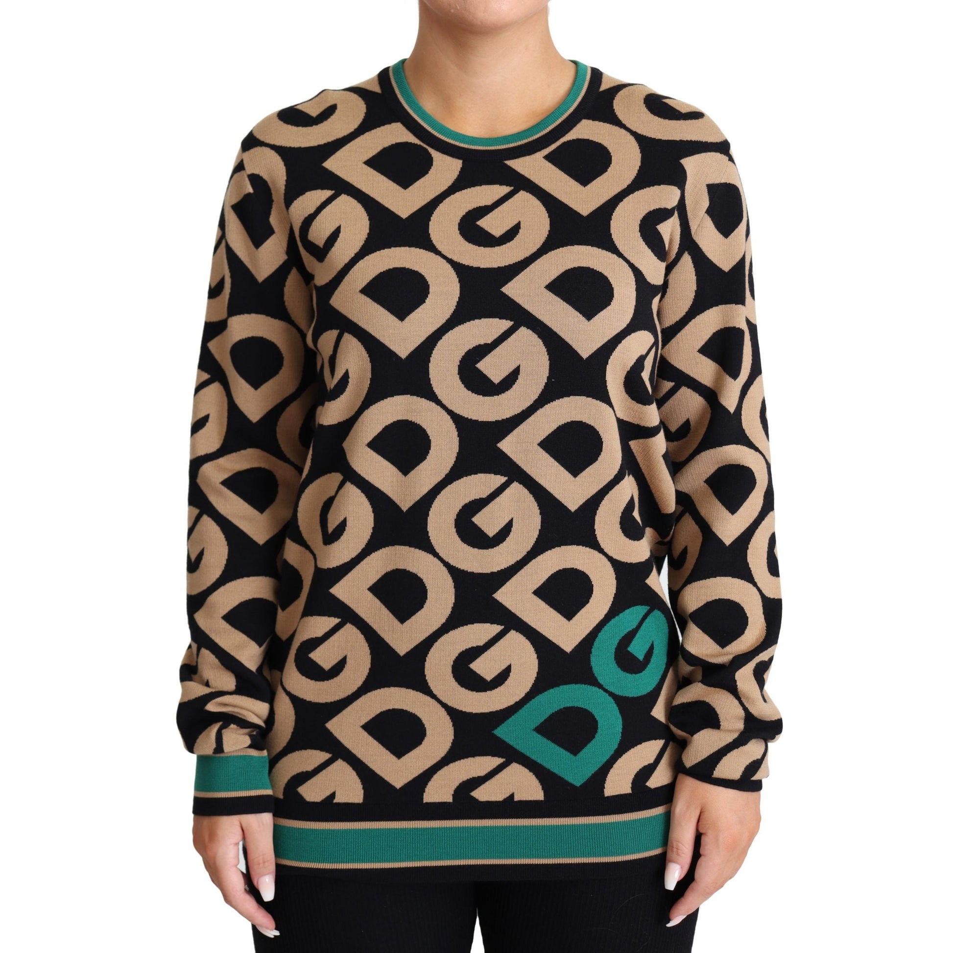 Gorgeous brand new with tags, 100% Authentic Dolce & Gabbana multicolor sweatshirt. Made of wool. Decorated with a printed logo pattern in beige and green. Elasticized crew neck, bottom hem and cuffs.