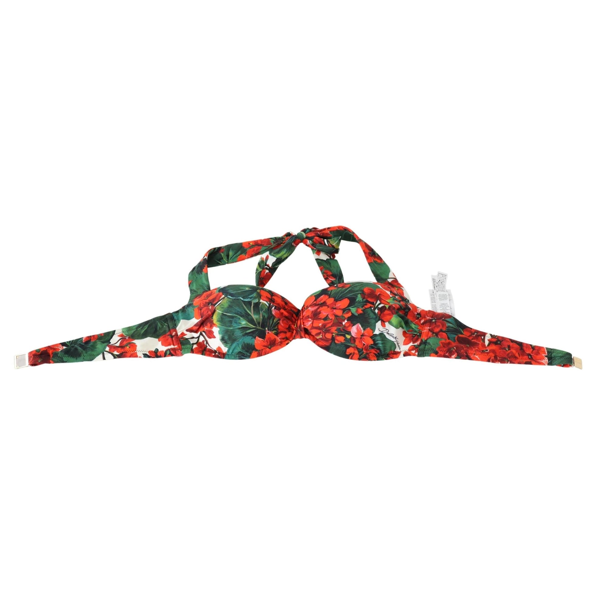 Gorgeous brand new with tags, 100% Authentic Dolce & Gabbana bikini top with floral print made of lightweight elastic material. Fastened at the back with a decorative logo-embossed closure, tie fastening at the neck.