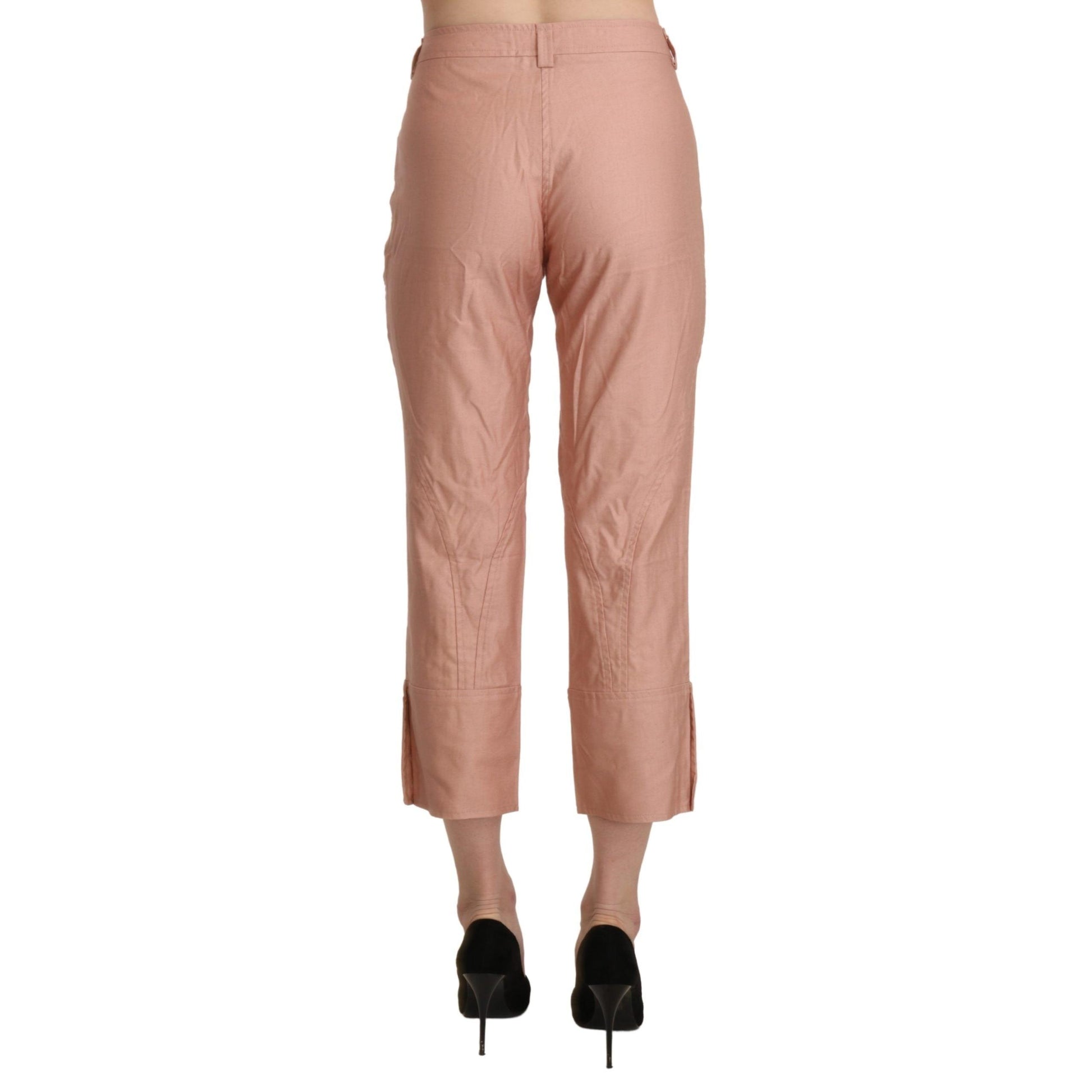 Cotton Pink High Waist Cropped Trouser Pants