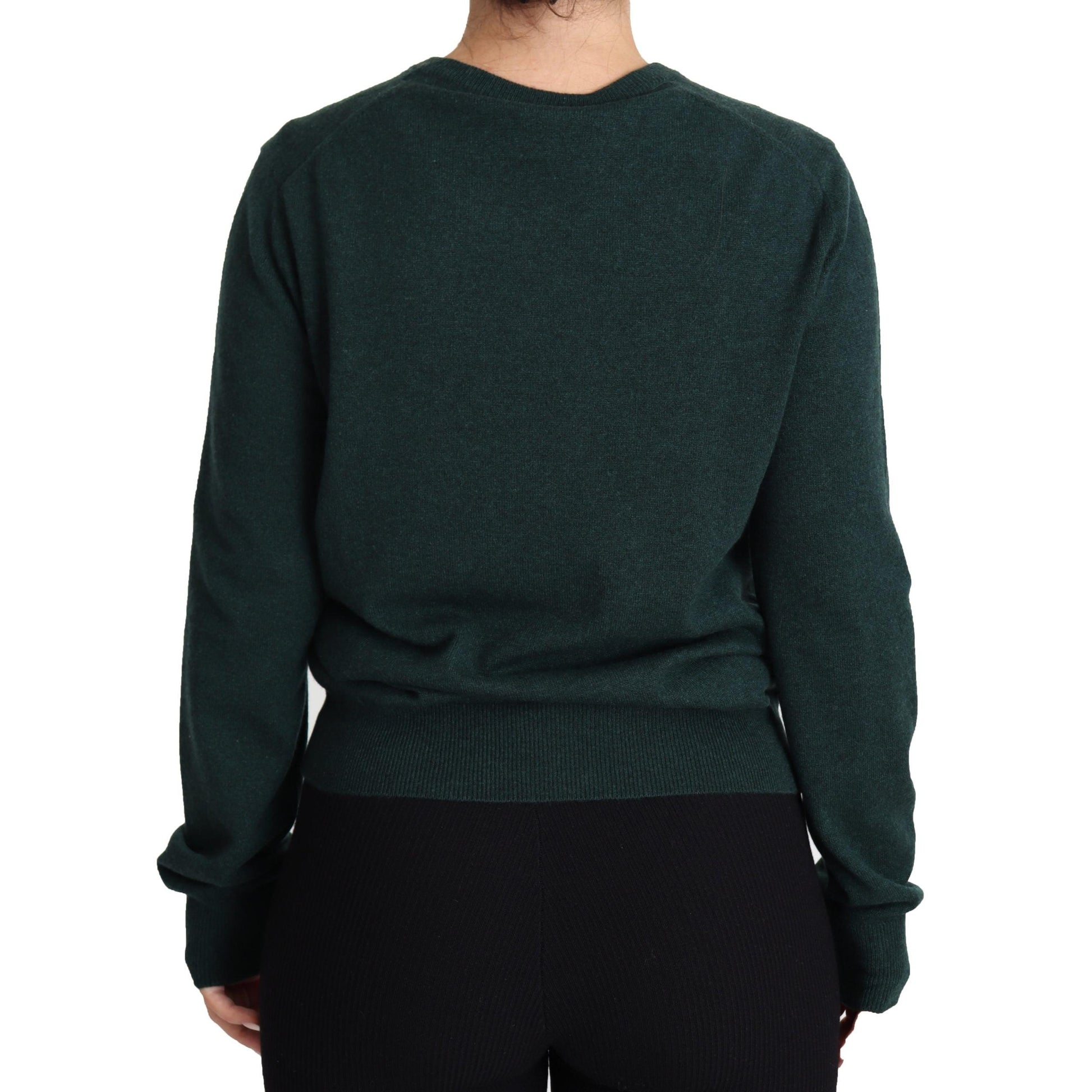 Dark Green Cashmere Crewneck Cardigan Sweater