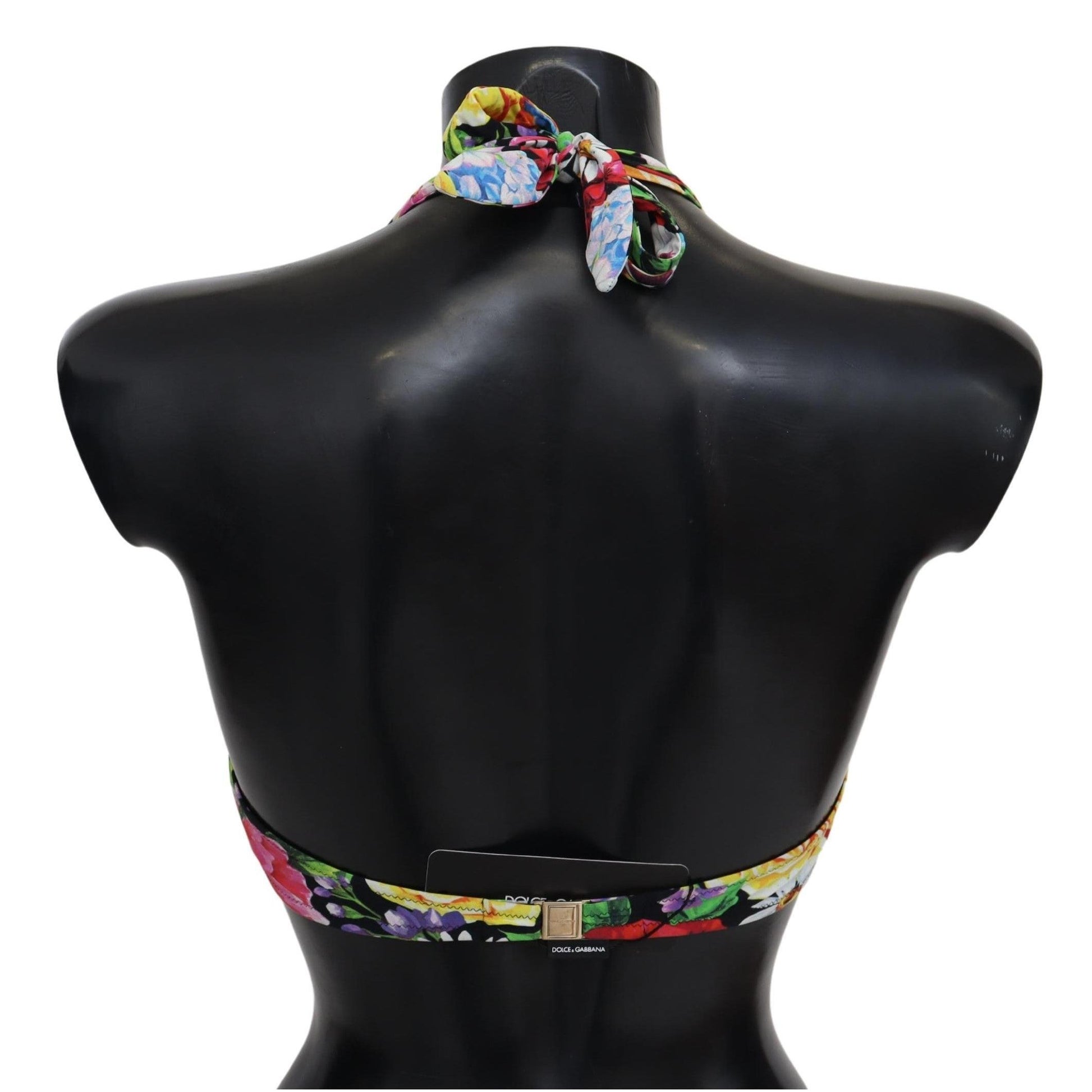 Gorgeous brand new with tags, 100% Authentic Dolce & Gabbana bikini top with floral print made of lightweight elastic material. Fastened at the back with a decorative logo-embossed closure, tie fastening at the neck.