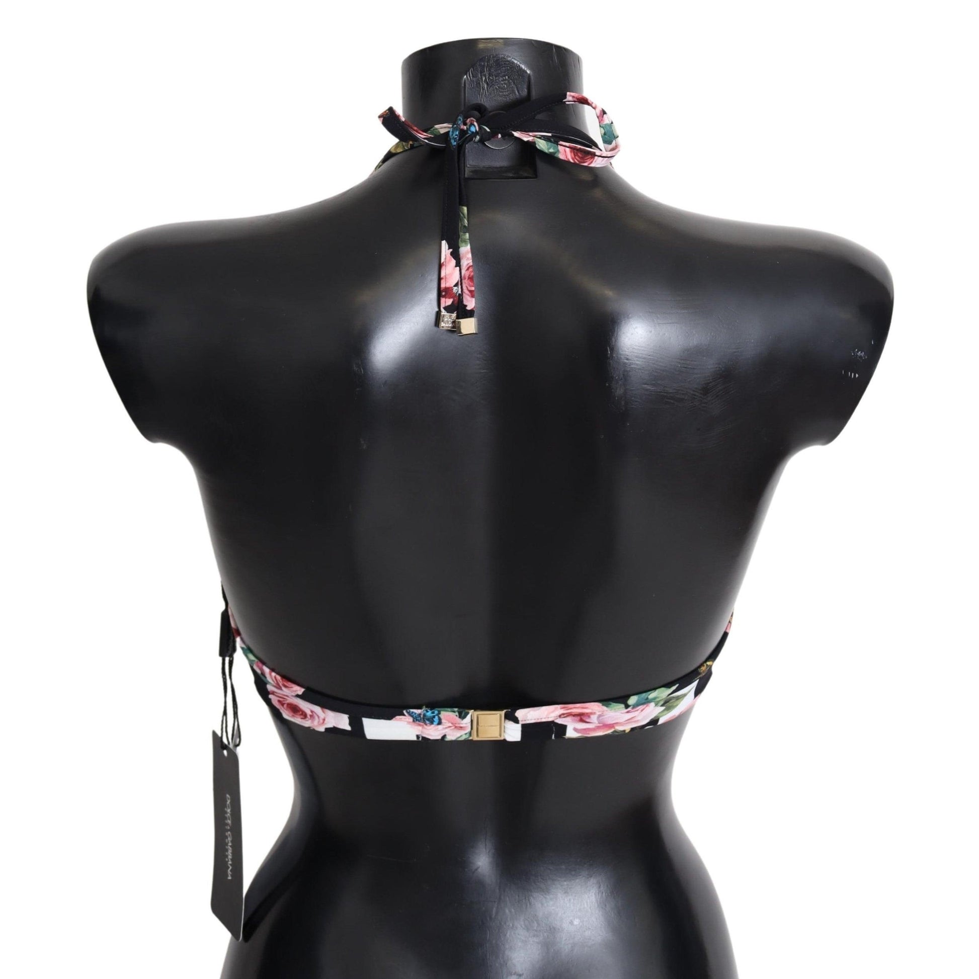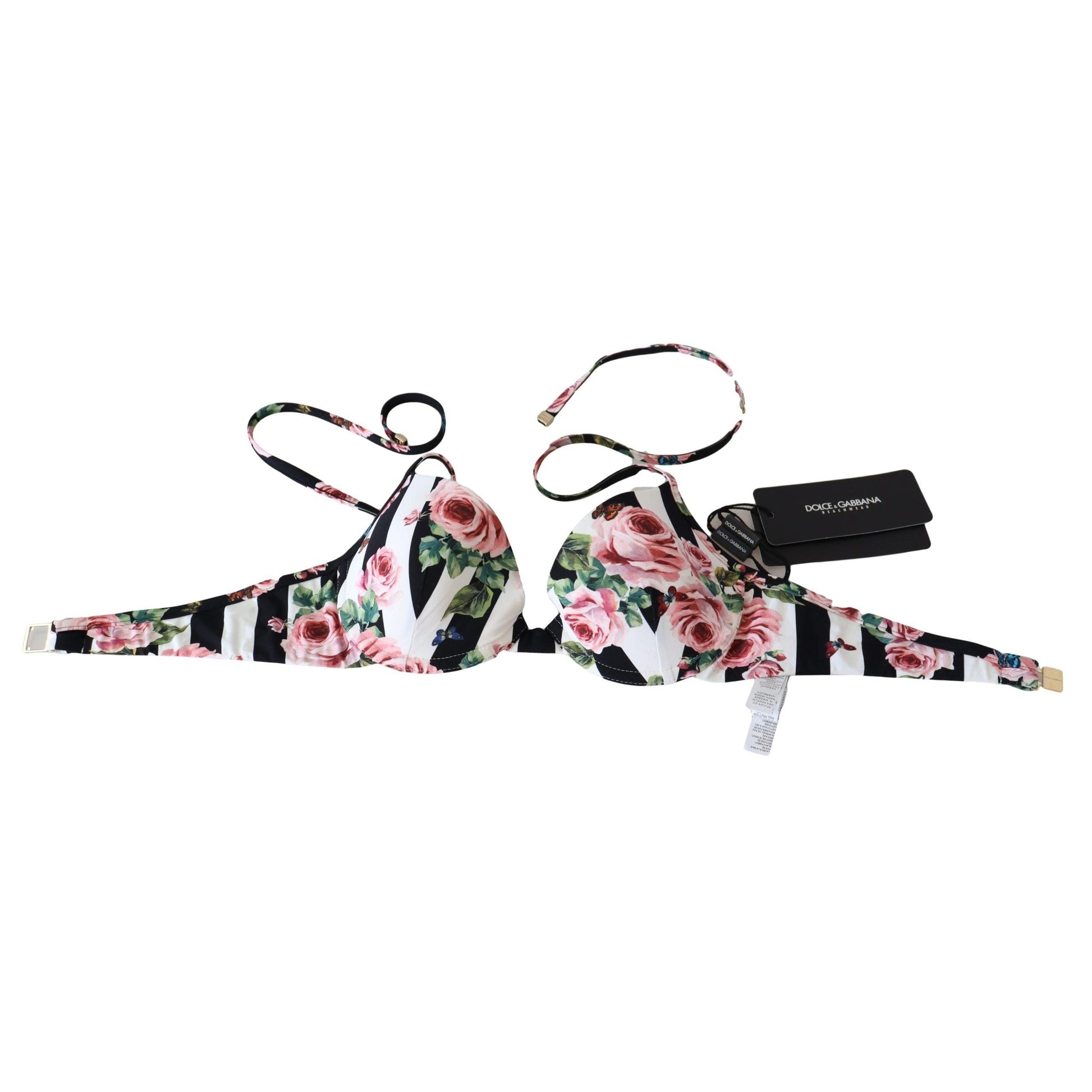 Gorgeous brand new with tags, 100% Authentic Dolce & Gabbana bikini top with rose print made of lightweight elastic material. Fastened at the back with a decorative logo-embossed closure, tie fastening at the neck.