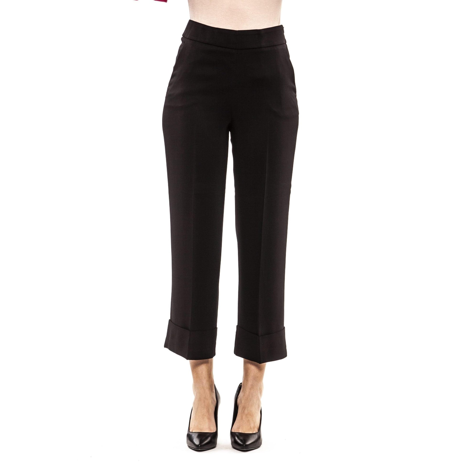 Soft Pants. Two Pockets On The Front And Two Thread Pockets On The Back. Closure With Side Zip. High Waist. Wide Fit With Palazzo Leg Turned Up At The Bottom.