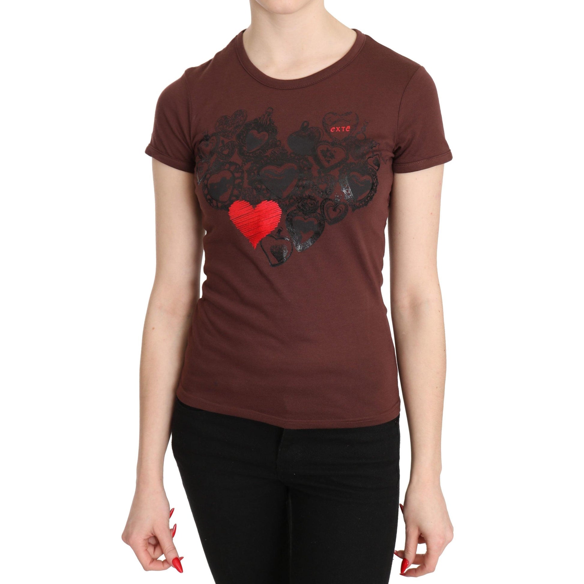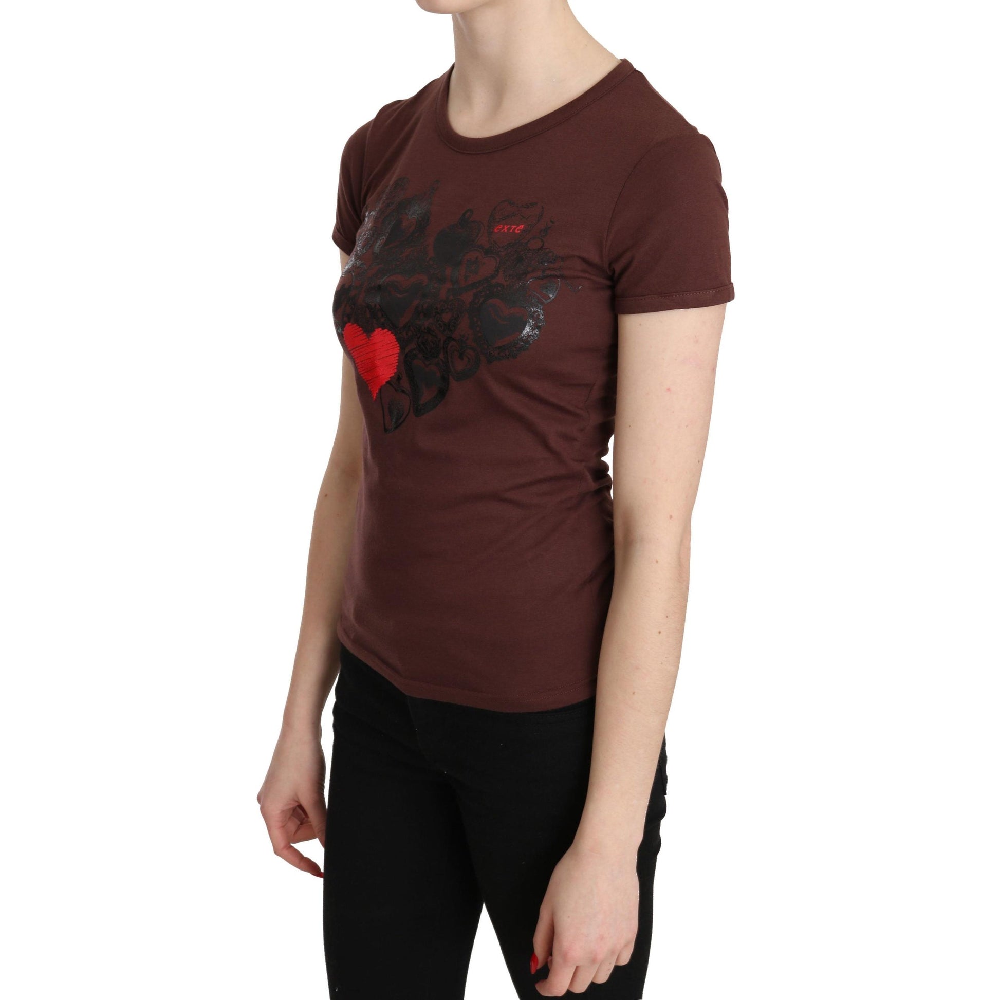 Brown Hearts Printed Round Neck T-shirt Top