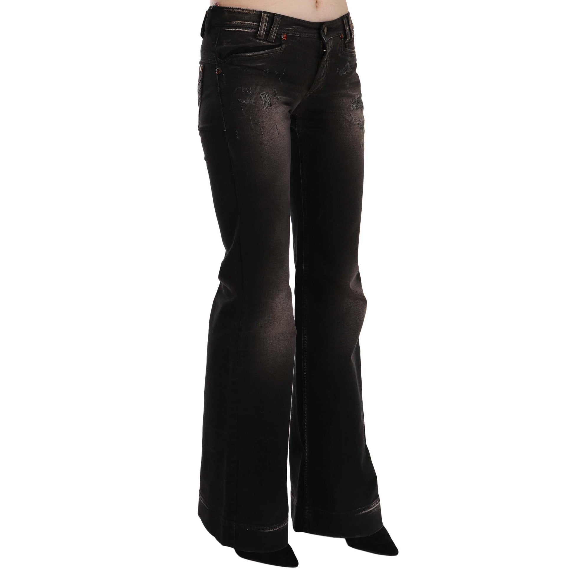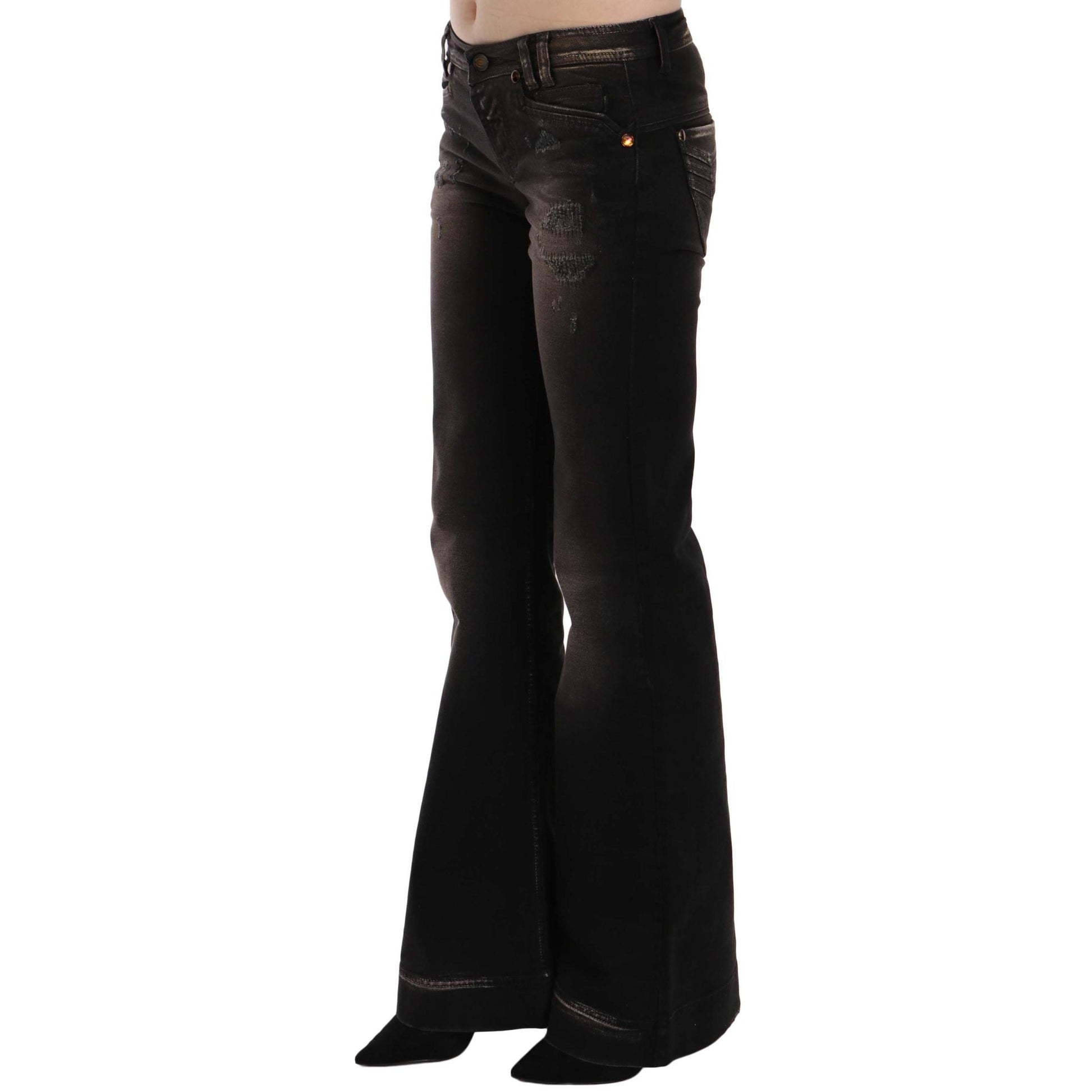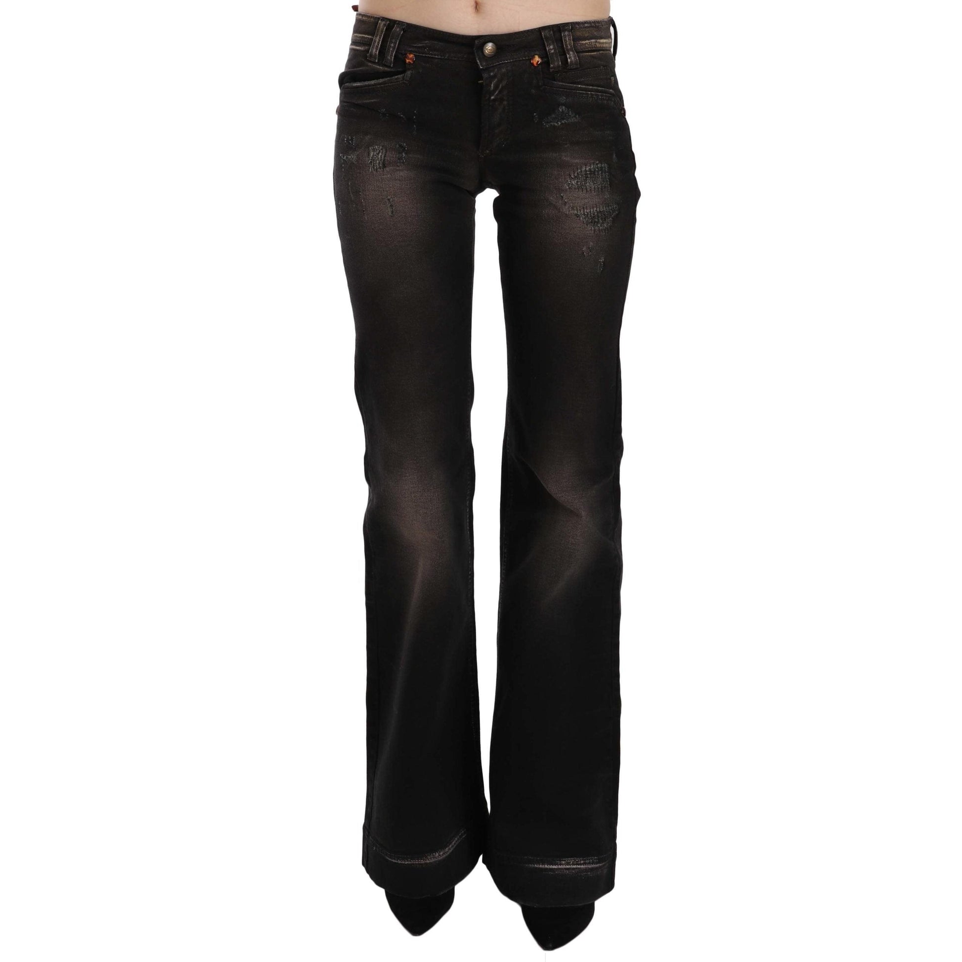 Brown Washed Ripped Low Waist Boot Cut Denim Jeans