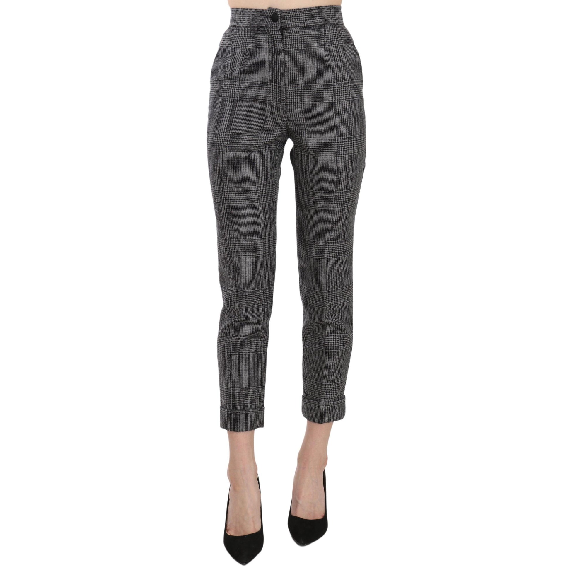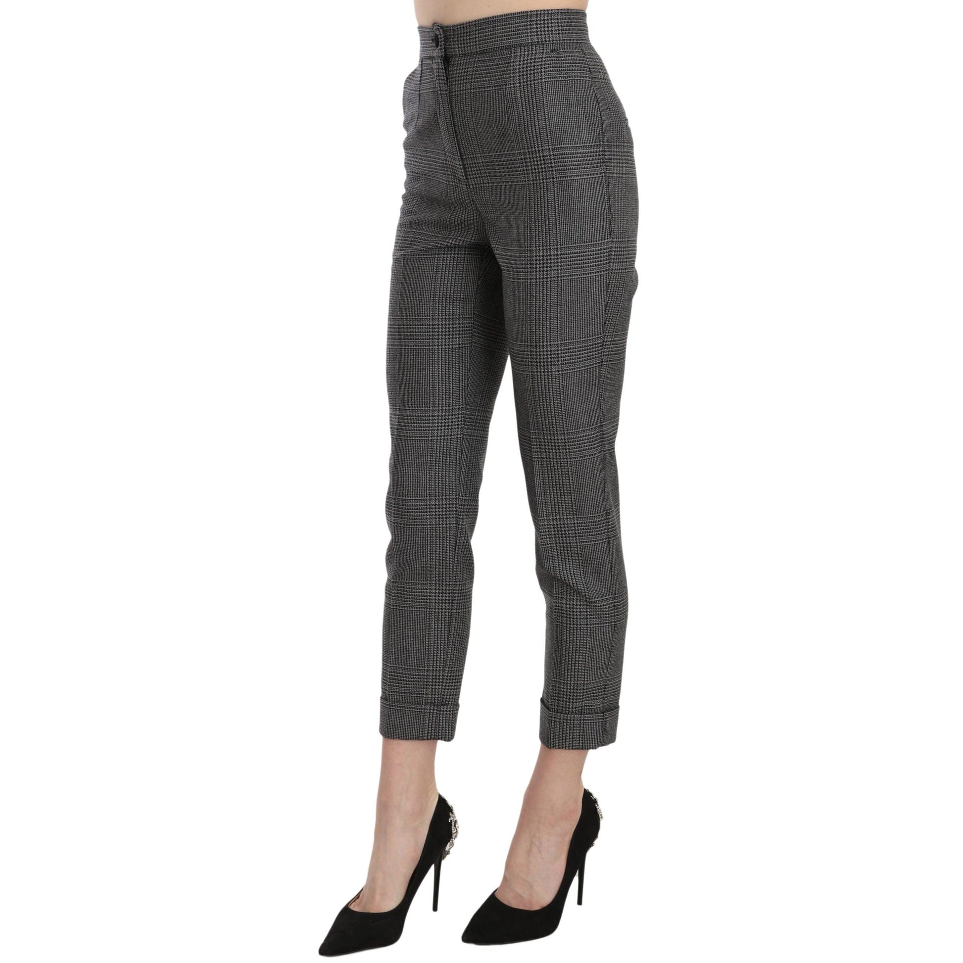 Gray Plaid High Waist Cropped Skinny Pants