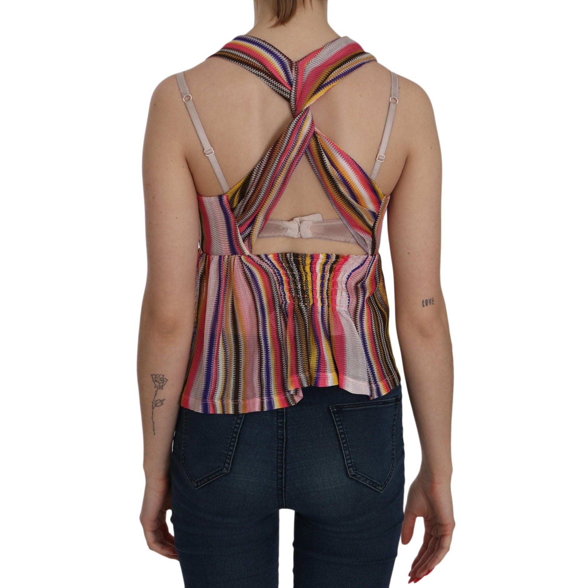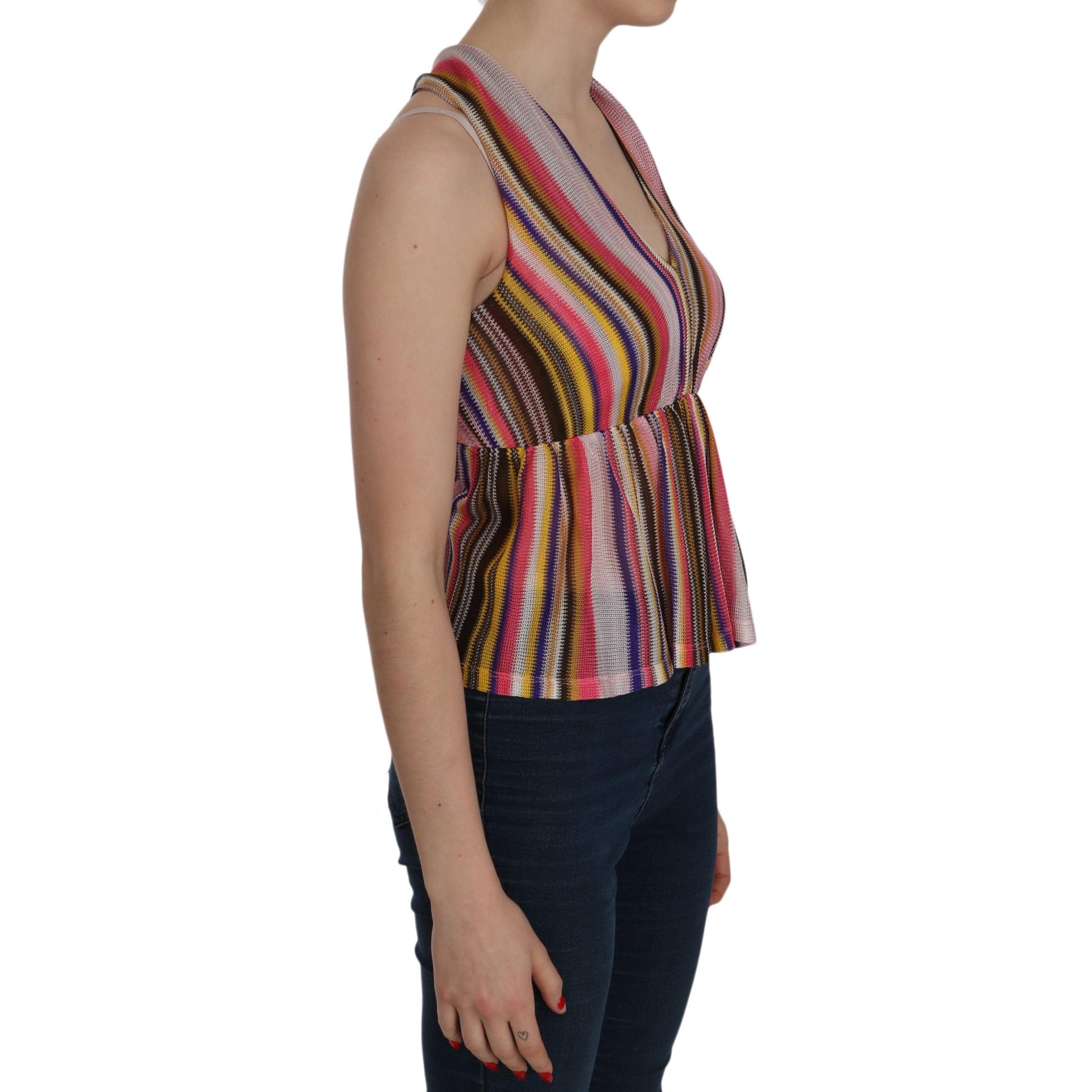 Multi Color Sleeveless Deep Neck Backless Top Blouse