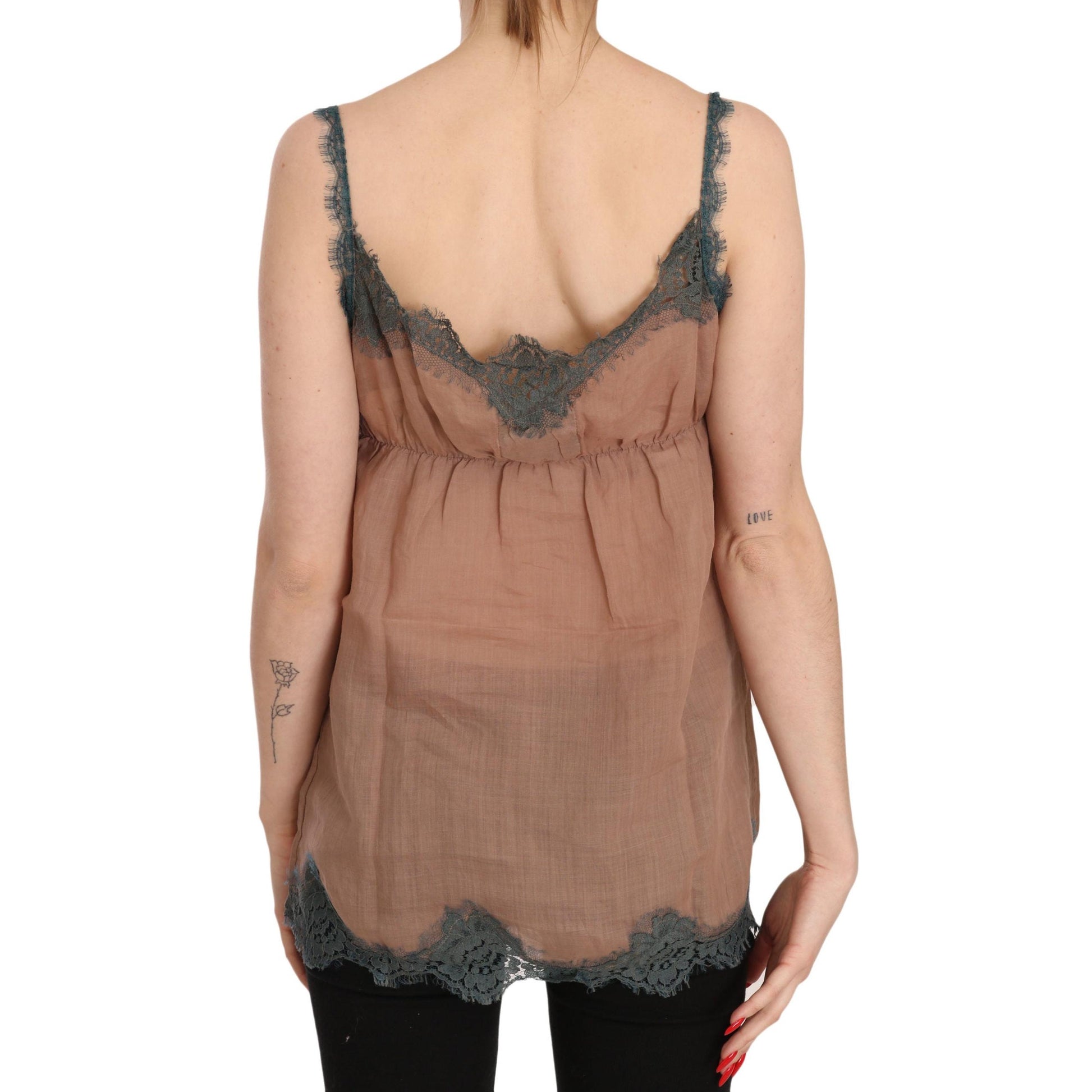 Brown Lace Spaghetti Strap Tank Top Blouse