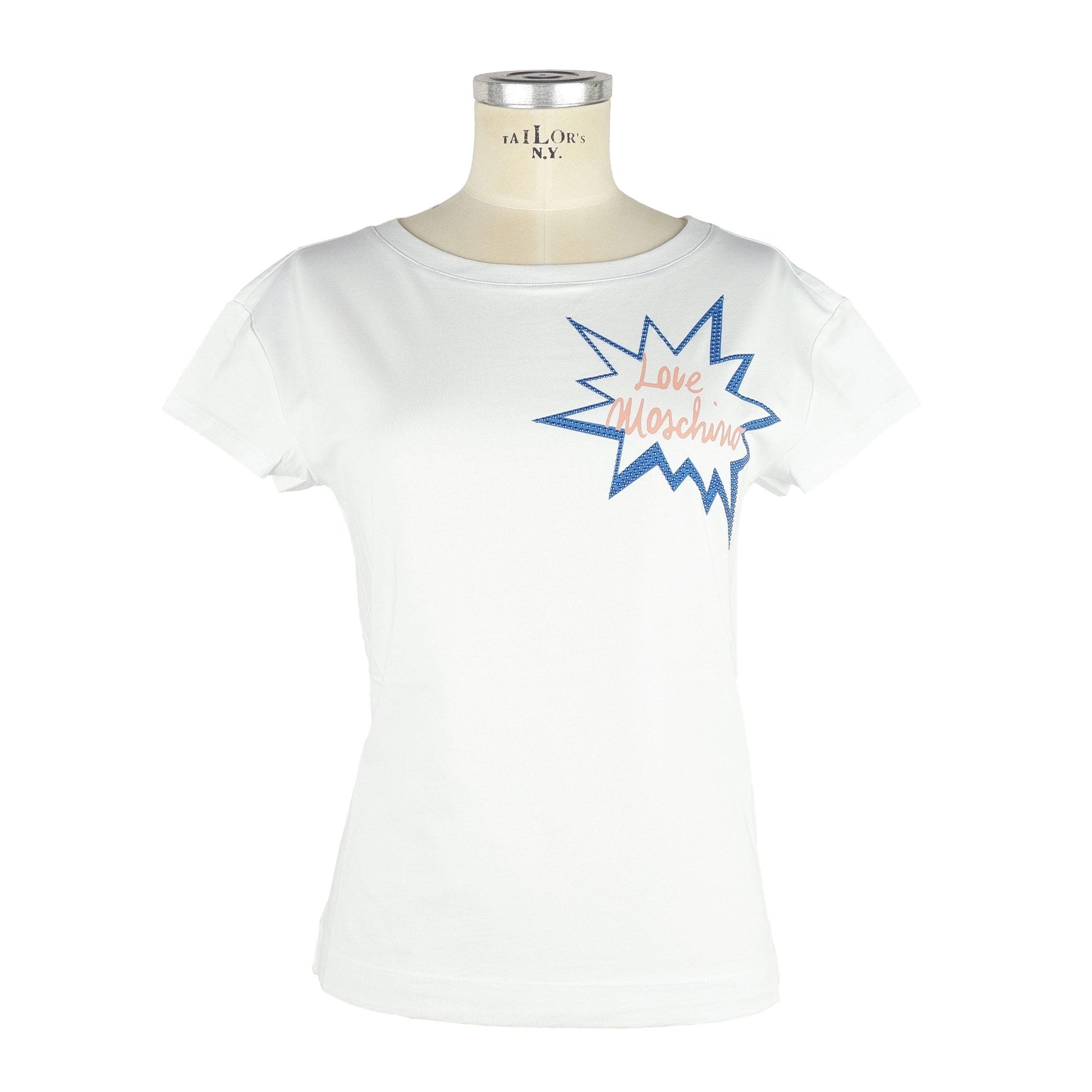 Love Moschino women’s cotton T-shirt with cartoon print and applied rhinestones