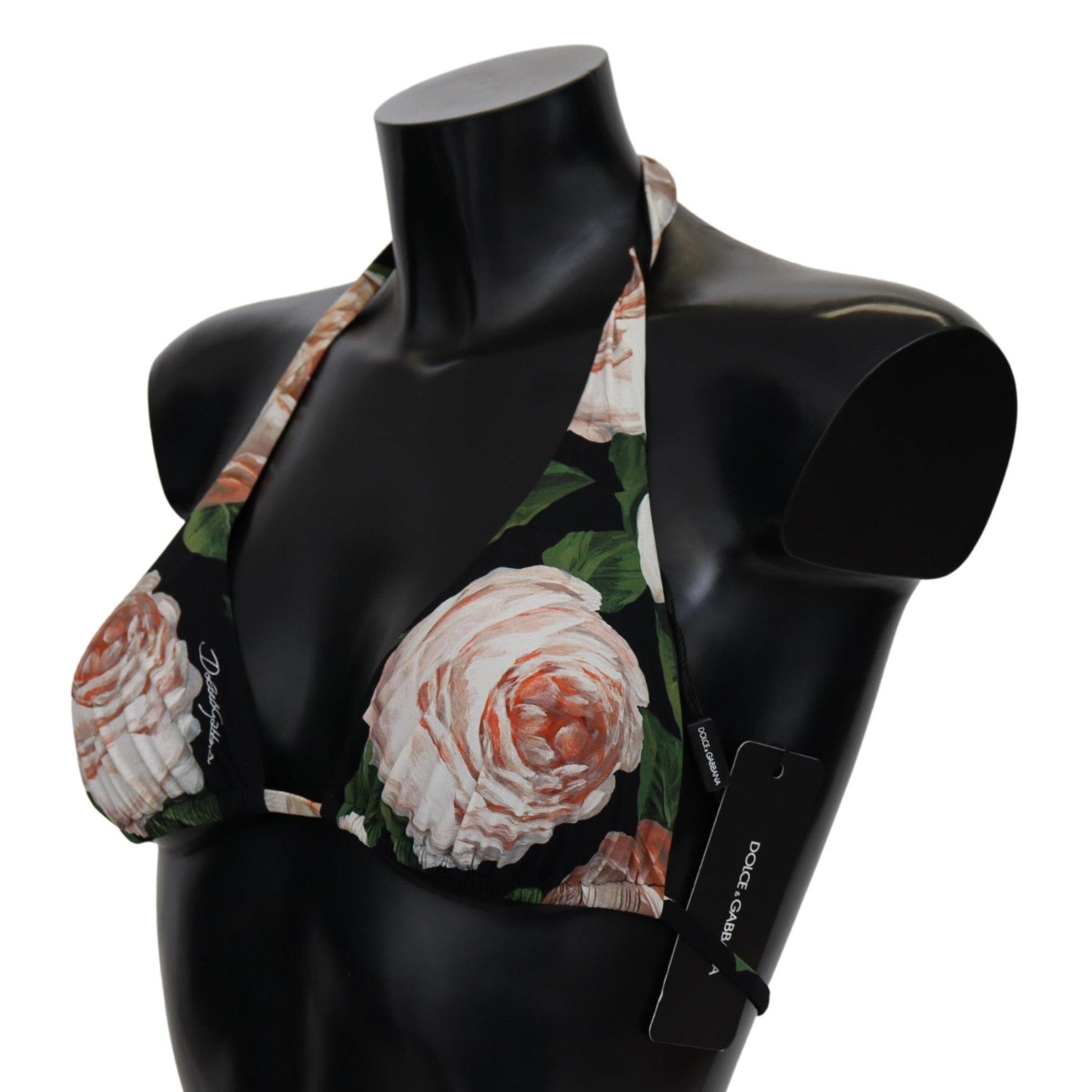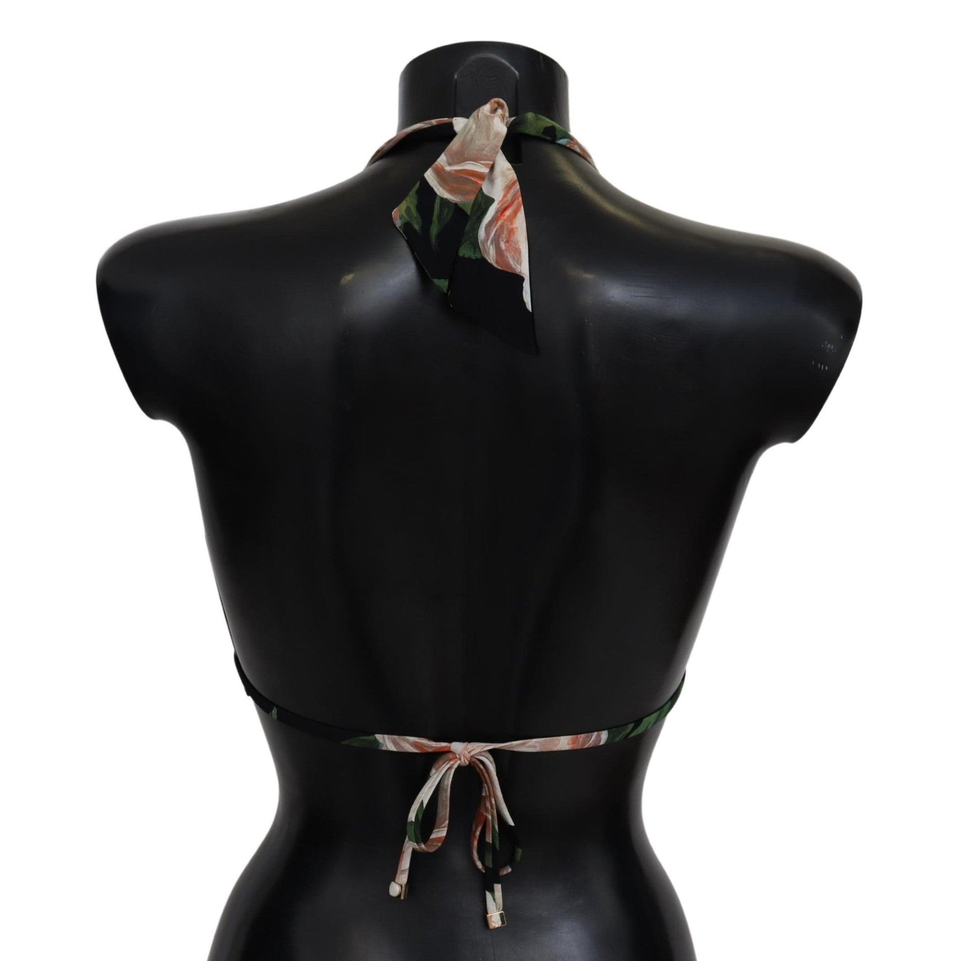 Gorgeous brand new with tags, 100% Authentic Dolce & Gabbana bikini top with floral print made of lightweight elastic material. Fastened at the back with a decorative logo-embossed closure, tie fastening at the neck.