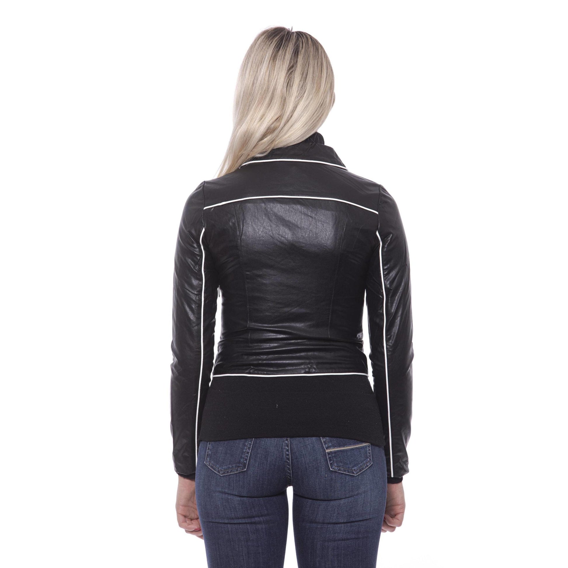 Slim Woman Jacket In Eco-leather. Zip Closure. Contrasting Edges. Welt Pockets With Zip.