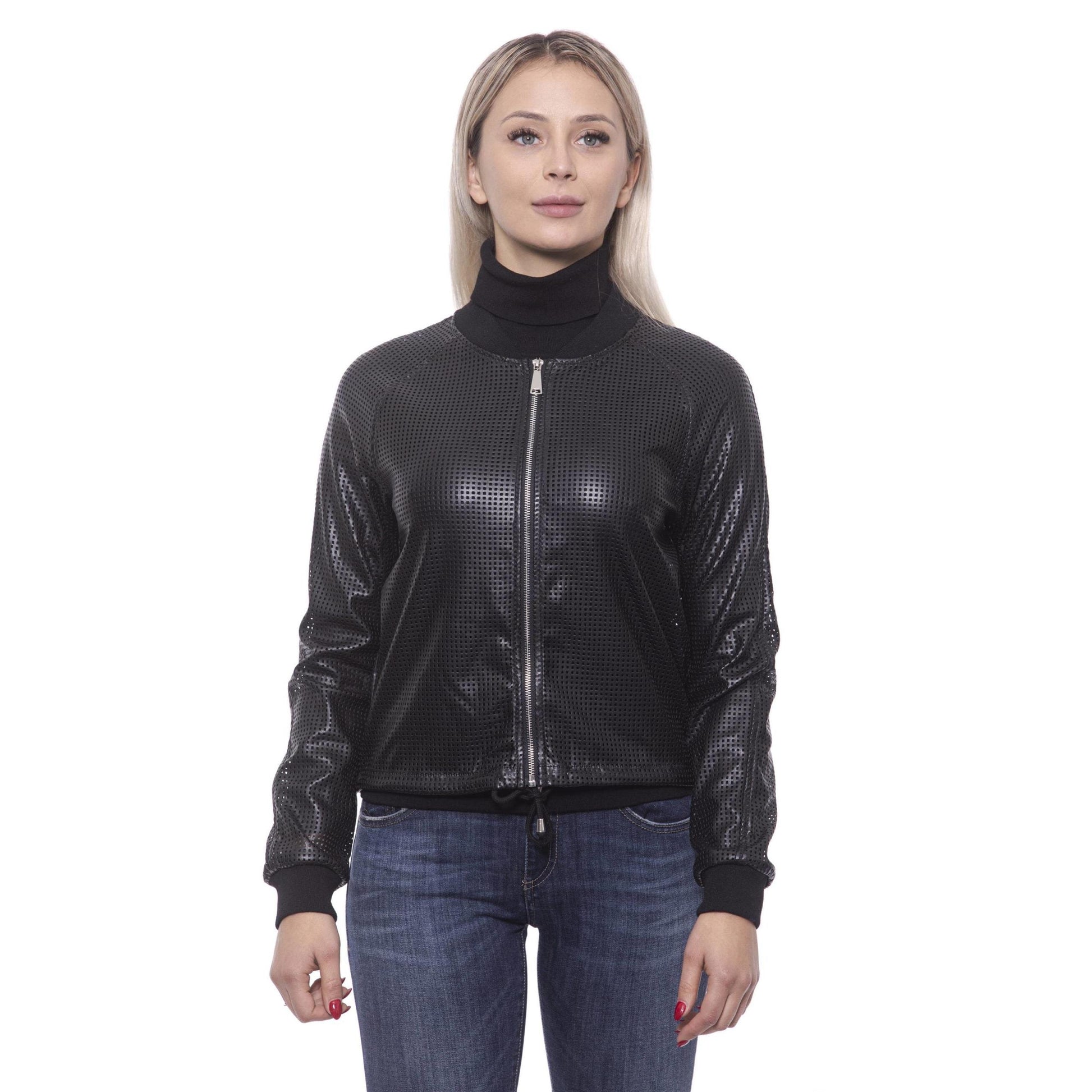 Woman Jacket In Perforated Faux Leather. She Zip Closure And Drawstring On The Bottom. Knitted Cuffs And Collar.