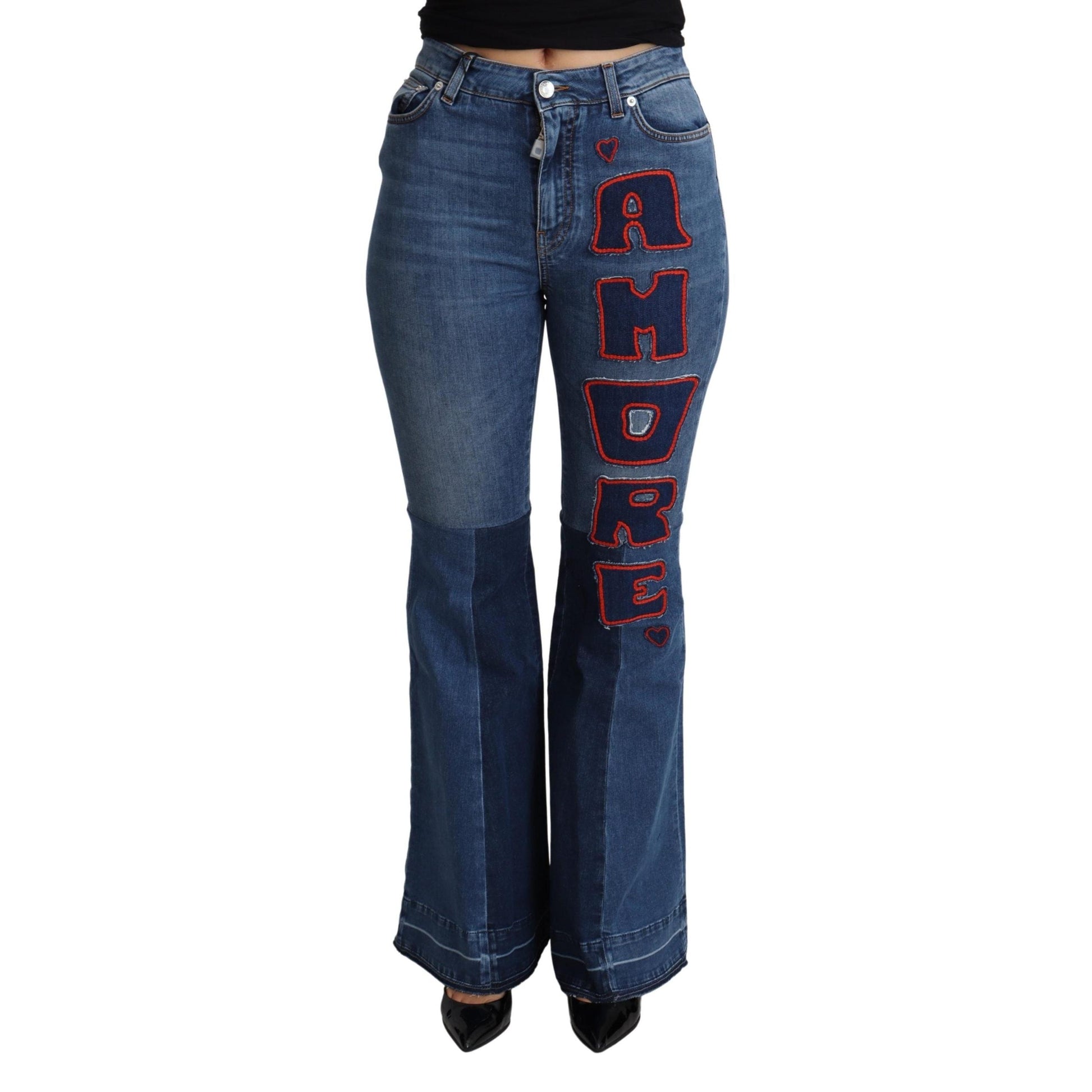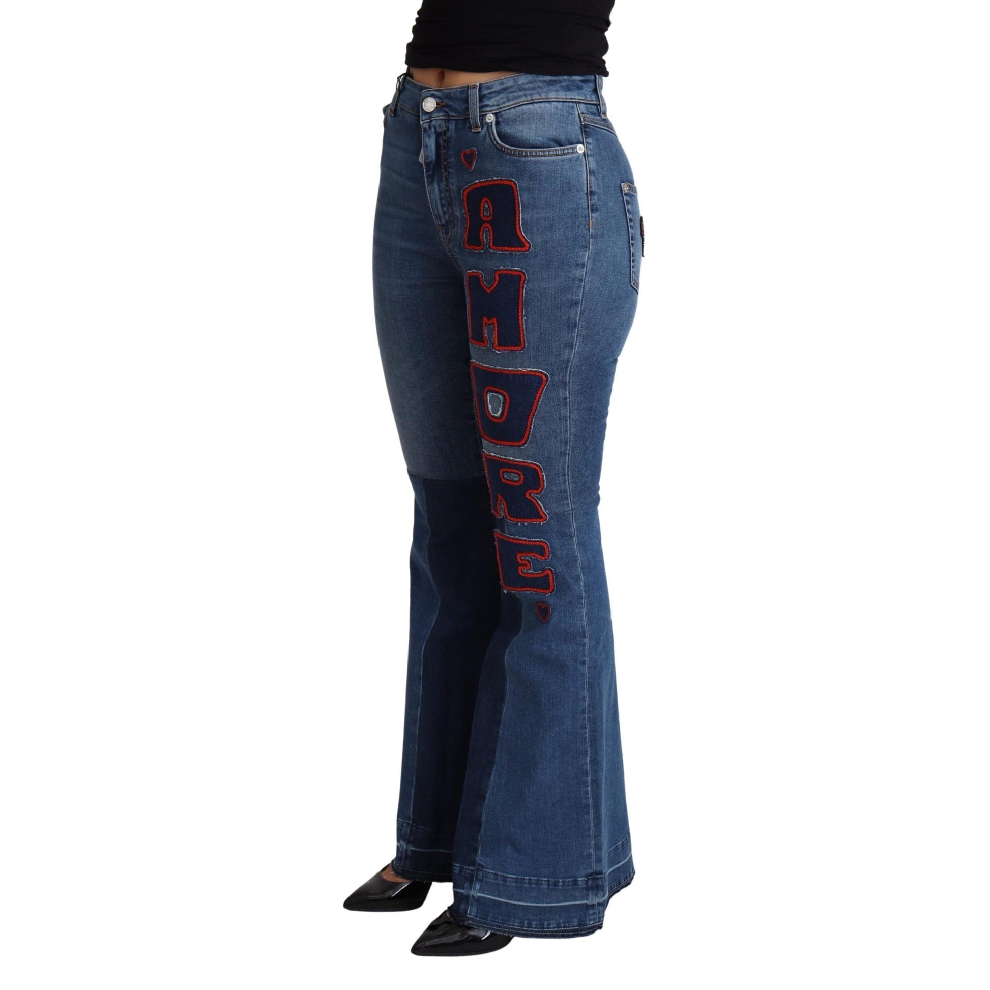 Gorgeous brand new with tags, 100% Authentic Dolce & Gabbana boot cut jeans with amore patch made from cotton stretch features mid waist and zipper closure.