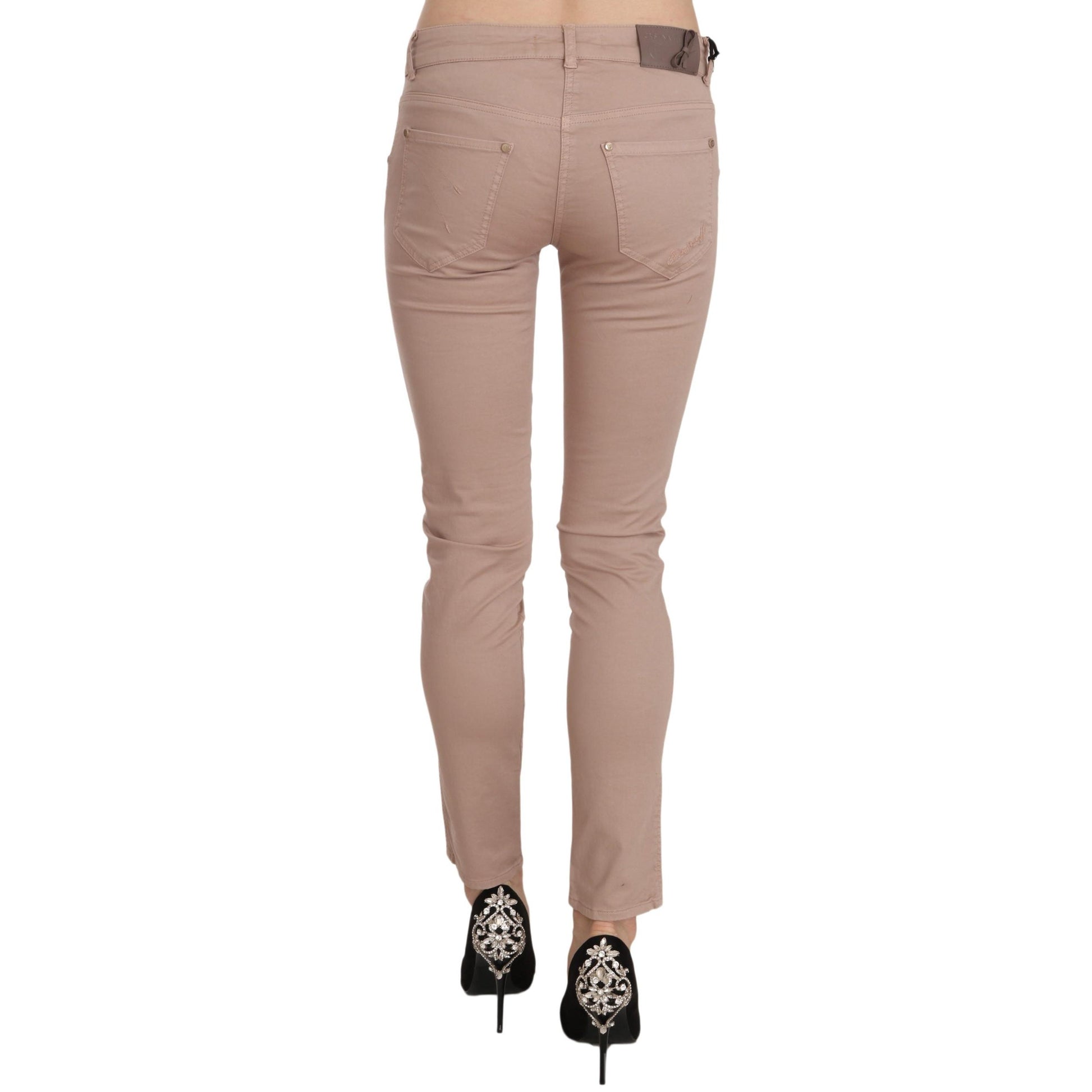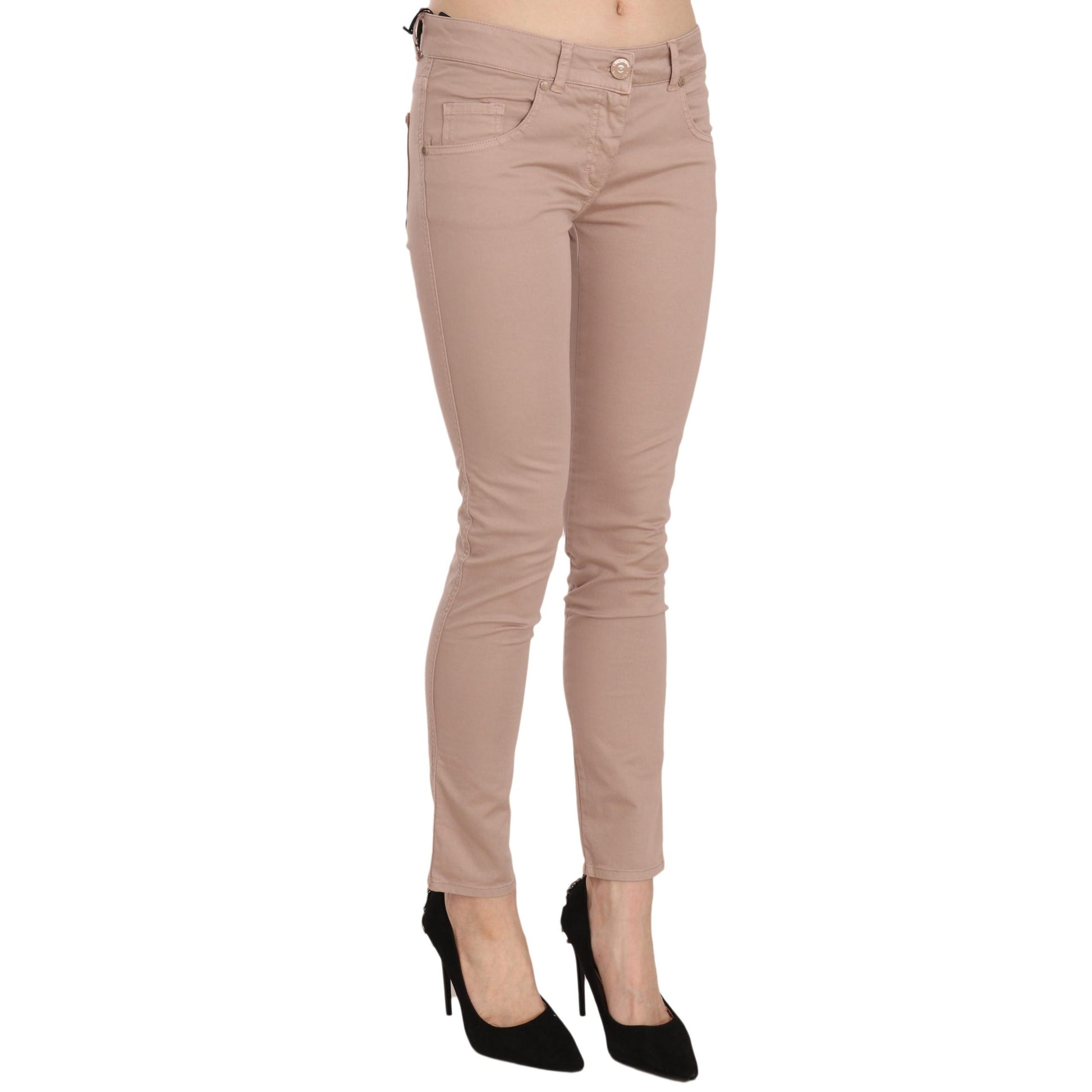 Brown Low Waist Slim Fit Skinny Cotton Pants