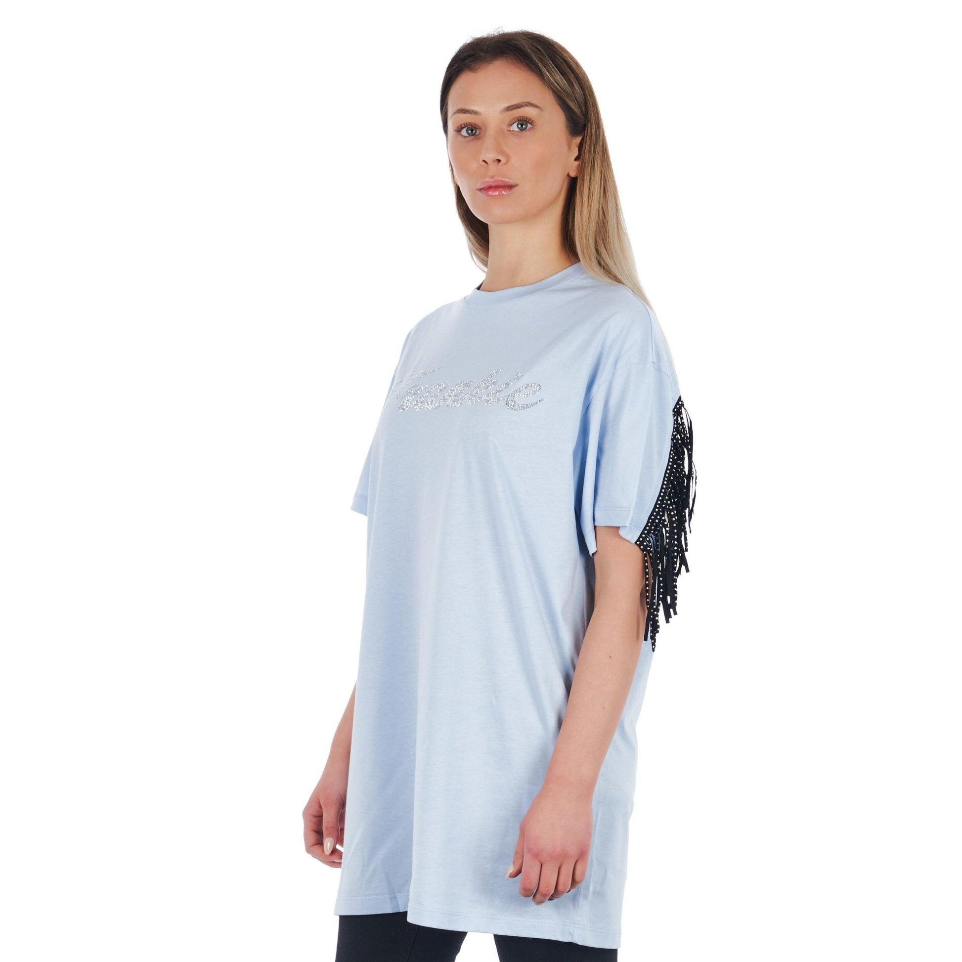 Oversized T-shirt With Front Logo. Studded Fringe On The Back.