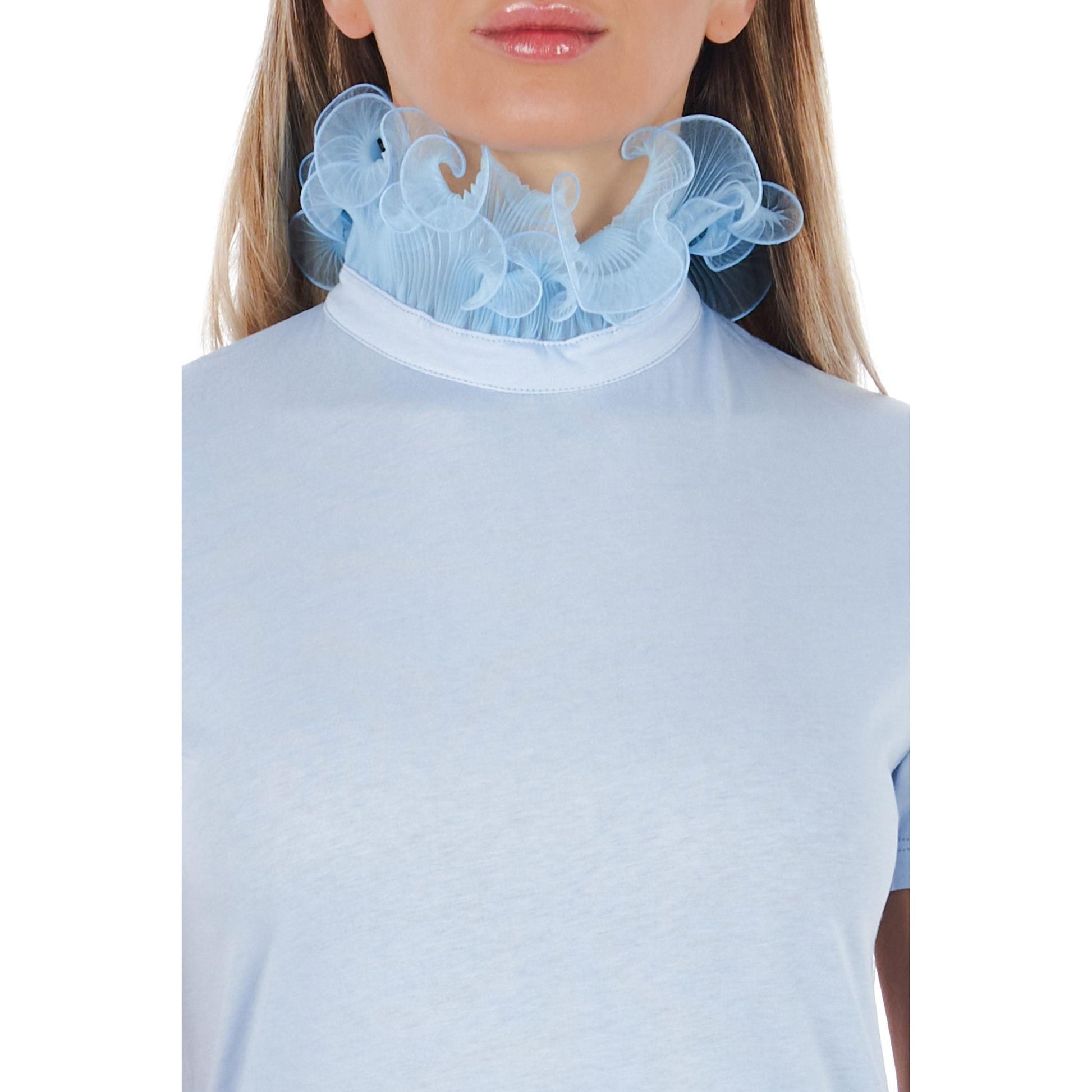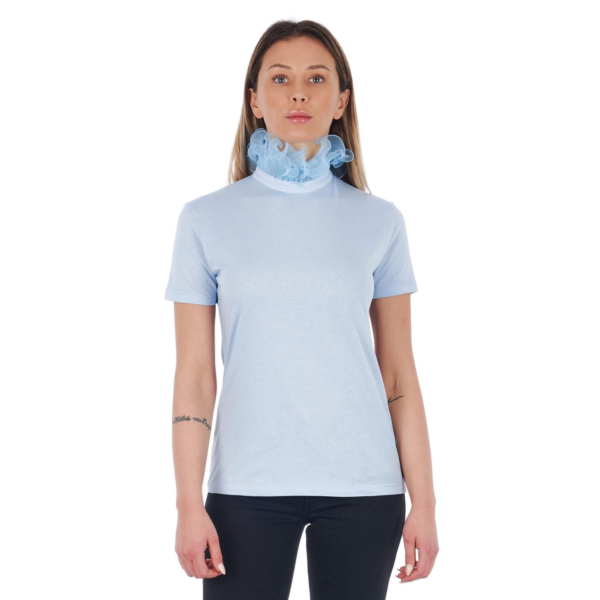 High Neck Short Sleeve T-shirt With Lace. Back With Print. Back Closure With Teardrop Opening.