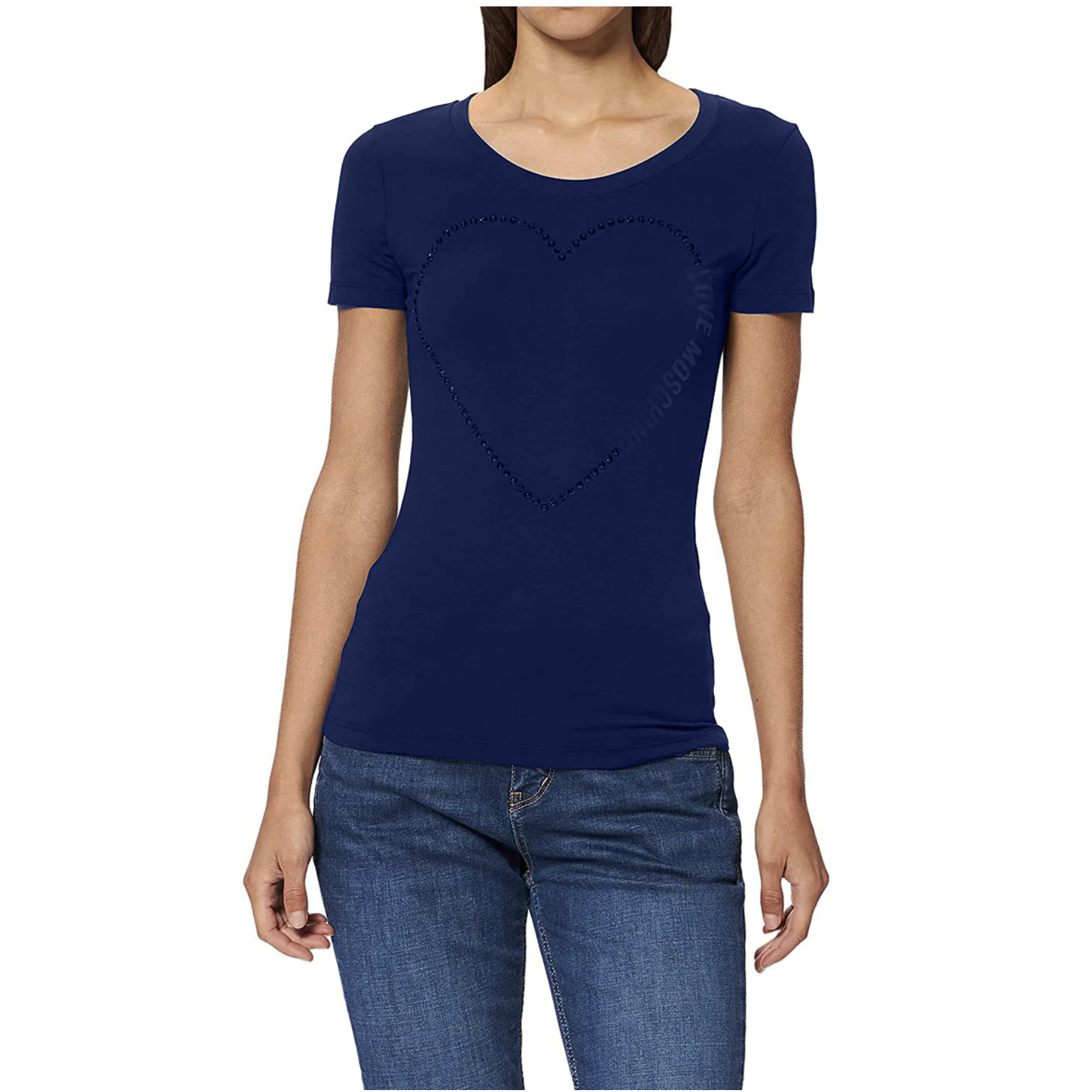 Love Moschino t-shirt, blu color, brand design on the front.