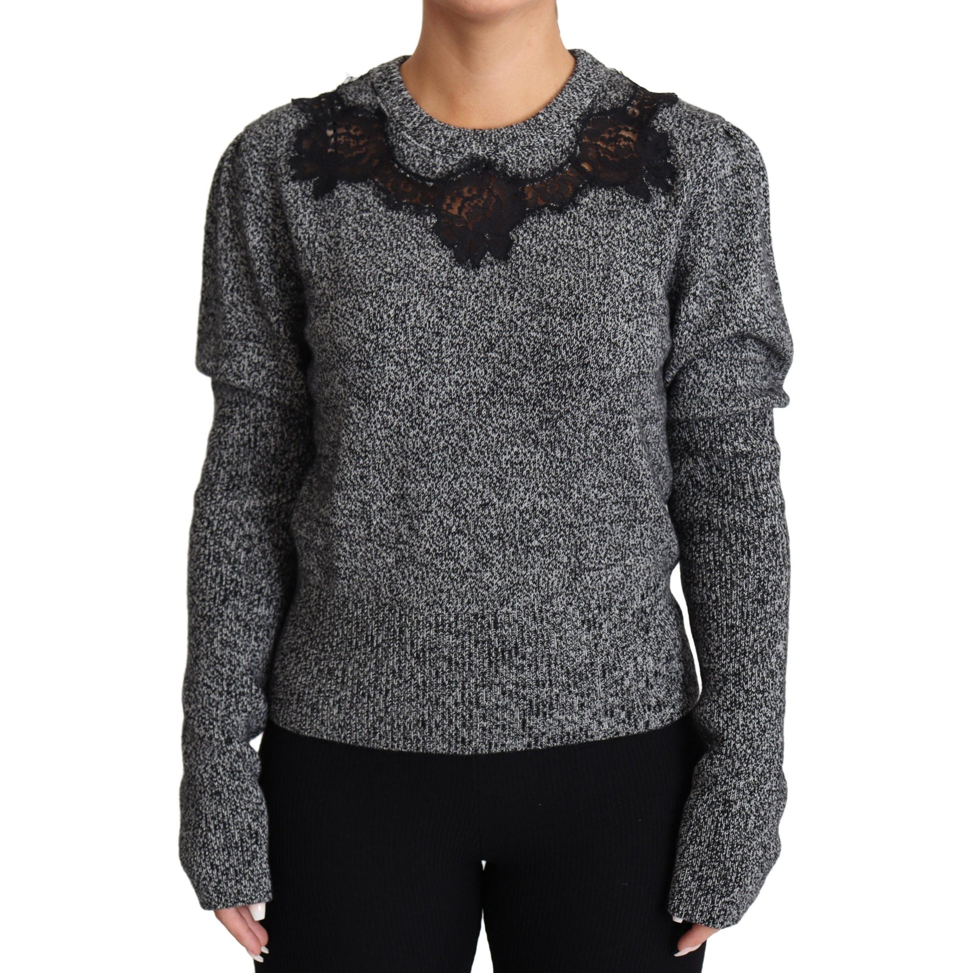 Gorgeous brand new with tags, 100% Authentic Dolce & Gabbana Grey and black crewneck rib-knit sweater. Made of cashmere. It features lace trimming and an elasticated collar, bottom hem and cuffs.