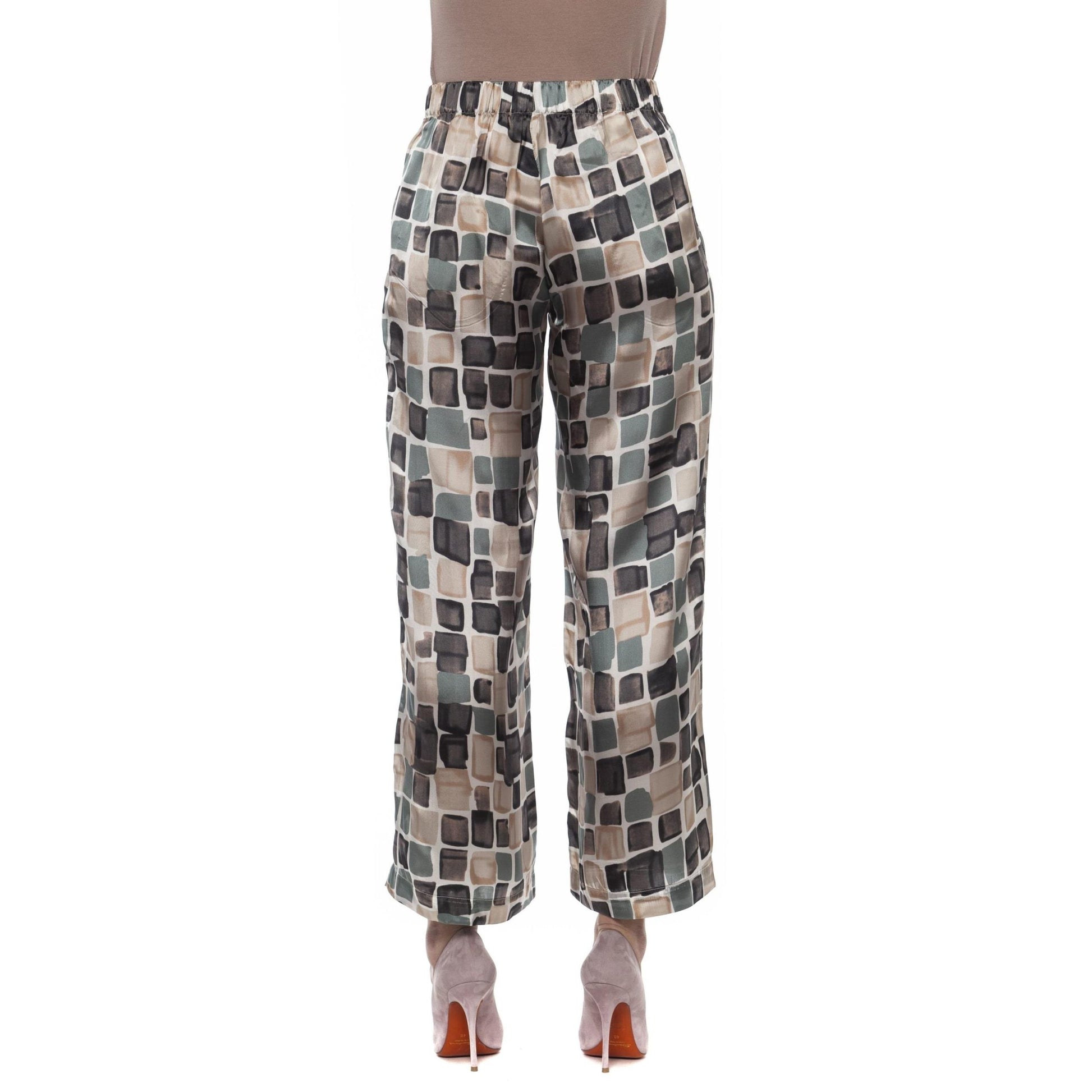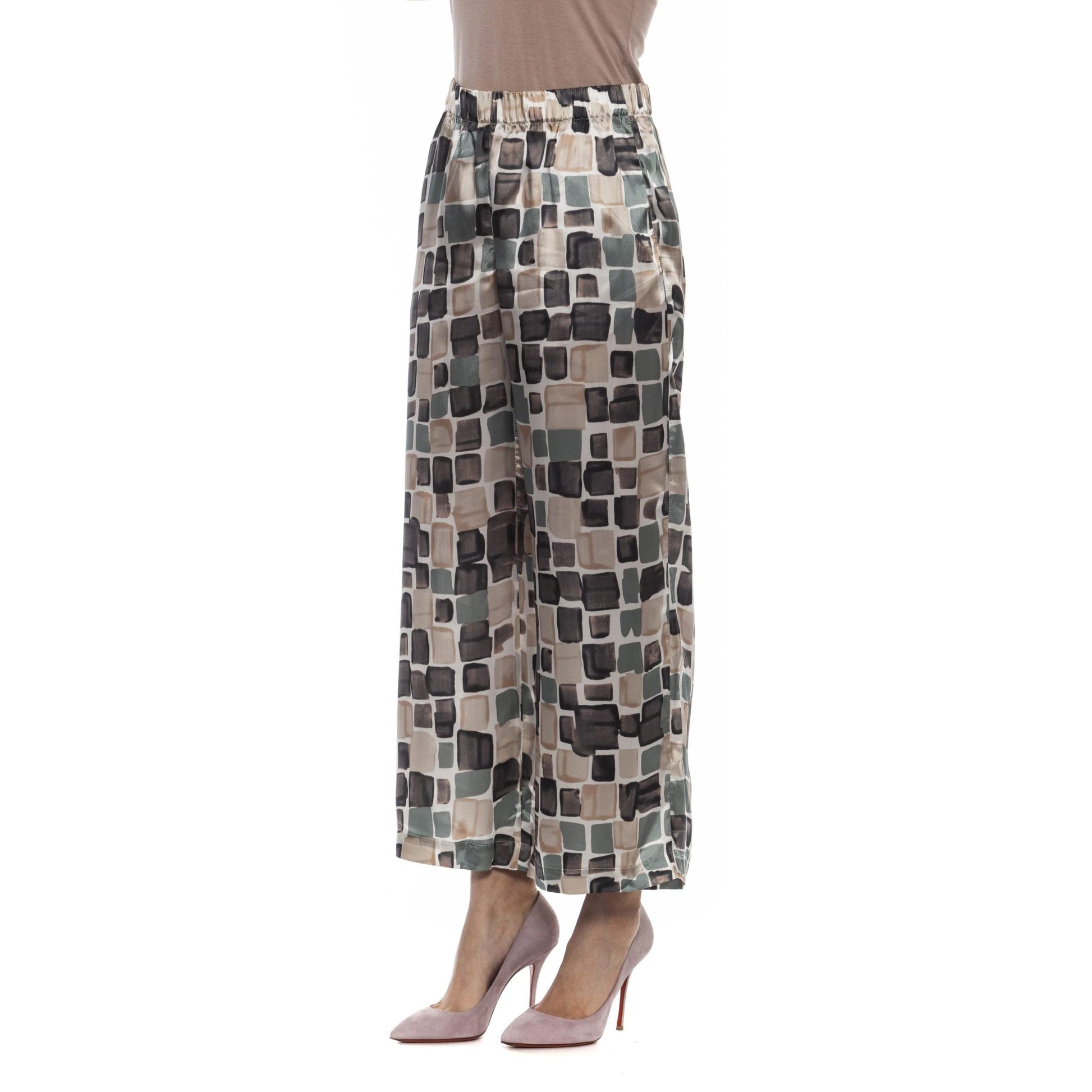 Pants In Soft And Fluid Multicolor Viscose Gabardine. High Waist With Elastic Band. Wide Fit With Palazzo Leg.