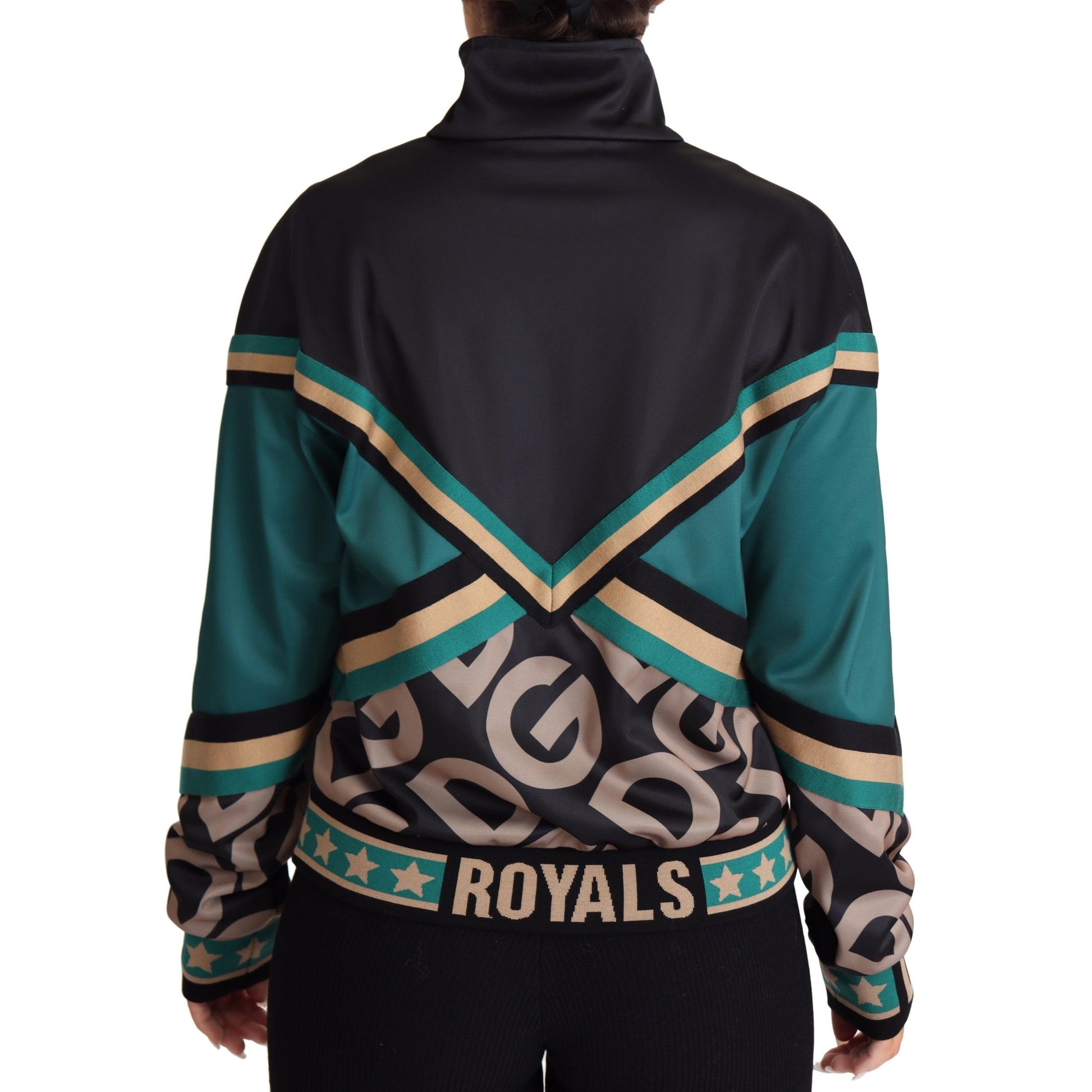 Gorgeous brand new with tags, 100% Authentic Dolce & Gabbana track jacket with logo mania pattern features spread collar, zip front, side zip pockets and hem hits below hips.