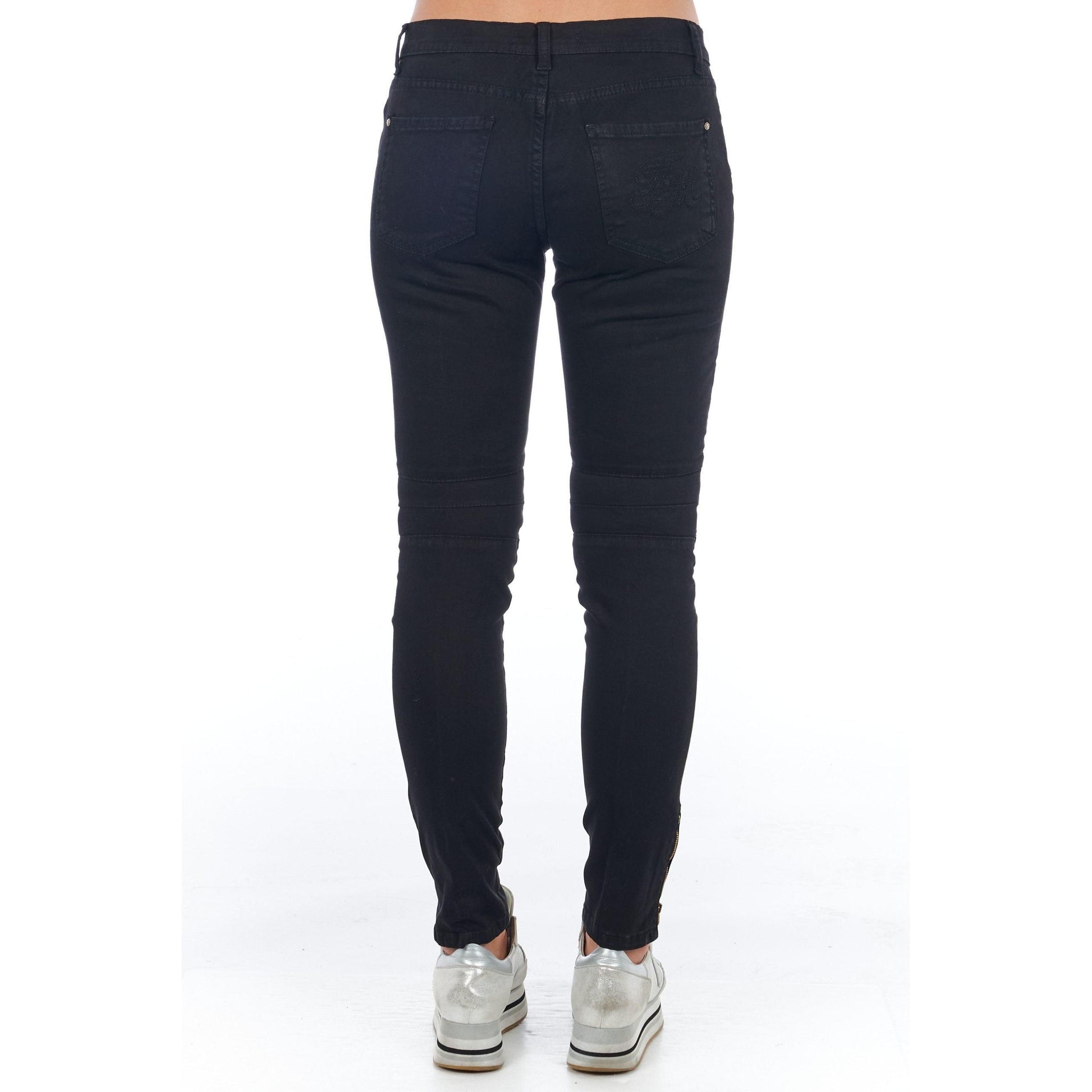 Biker Stretch Denim Jeans With Worn Wash. Low Waist And Multipockets. Front Closure With Zip And Button.